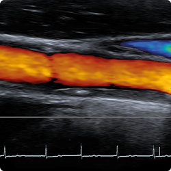 Die Duplexsonographie der hirnzuführenden Gefässe erlaubt nicht nur die Stenosegraduierung, aber auch mittels B-Modus Rückschlüsse auf die Plaquestabilität.
